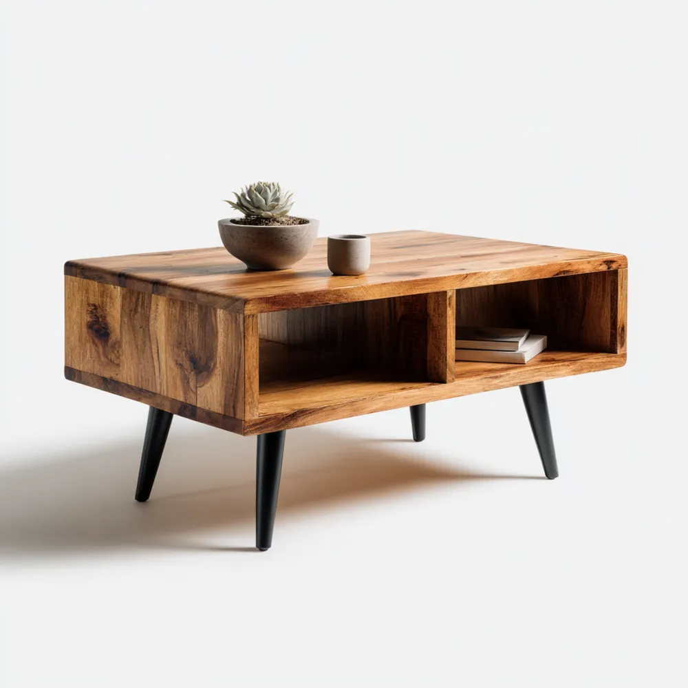 Tavolino da caffè in legno massello 90x50x40 cm - Naturale/Nero - Design rustico